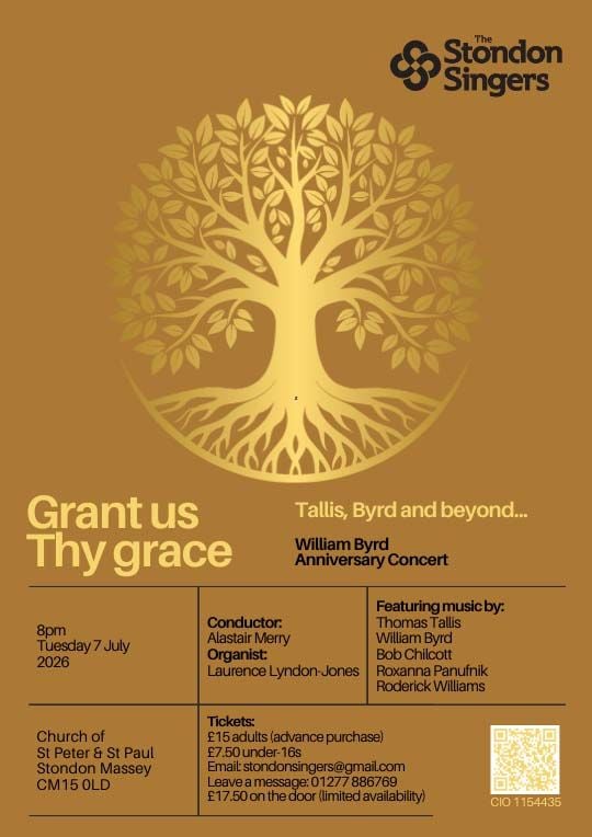 Our next concert is Grant us Thy grace - our William Byrd Anniversary Concert, featuring music by Byrd, Tallis Chilcott, Panufnik and Roderick Williams.